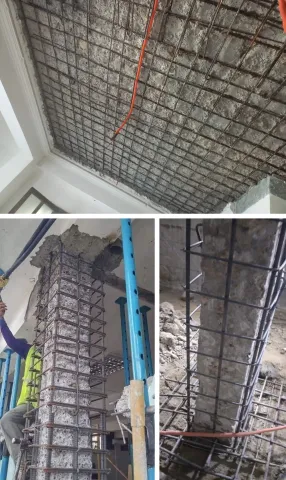 معالجة صدأ حديد التسليح وترميم الأسقف الخرسانية والكمرات والأعمدة.